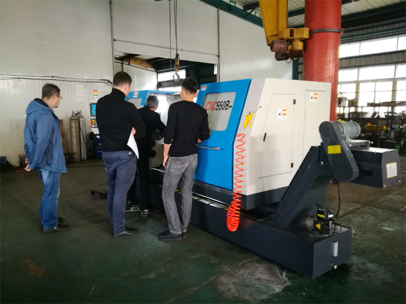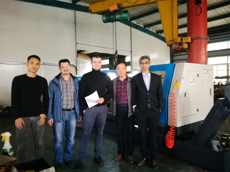 Russian customers to my company acceptance slewing bed CNC lathe