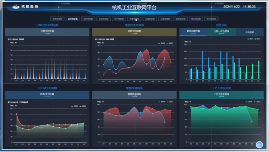 運用SOLIDWORKS、CAPP並與PLM集成,實現(xiàn)研發數字(zì)化協同(tóng)設計與產品全生命周(zhōu)期管理,同時運用數字孿生技術對車間及產線進行模擬,實現(xiàn)對生產過(guò)程的精益化管(guǎn)控。